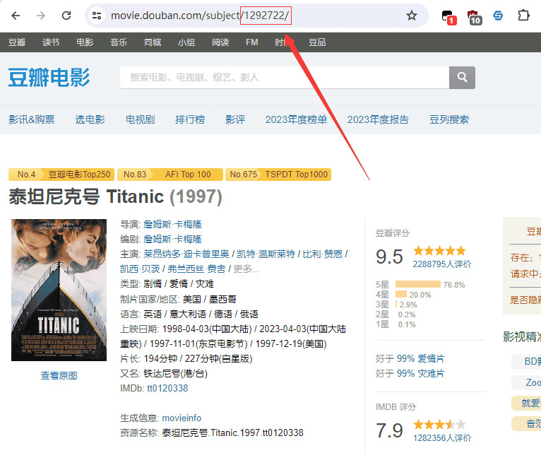 进入豆瓣电影详情页:https://movie.douban.com/subject/1292722/